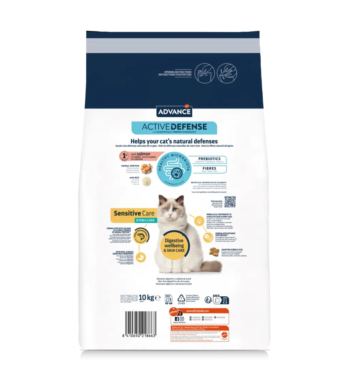 ADVANCE Sensitive Sterilized es un alimento completo y equilibrado especialmente formulado para gatos esterilizados.