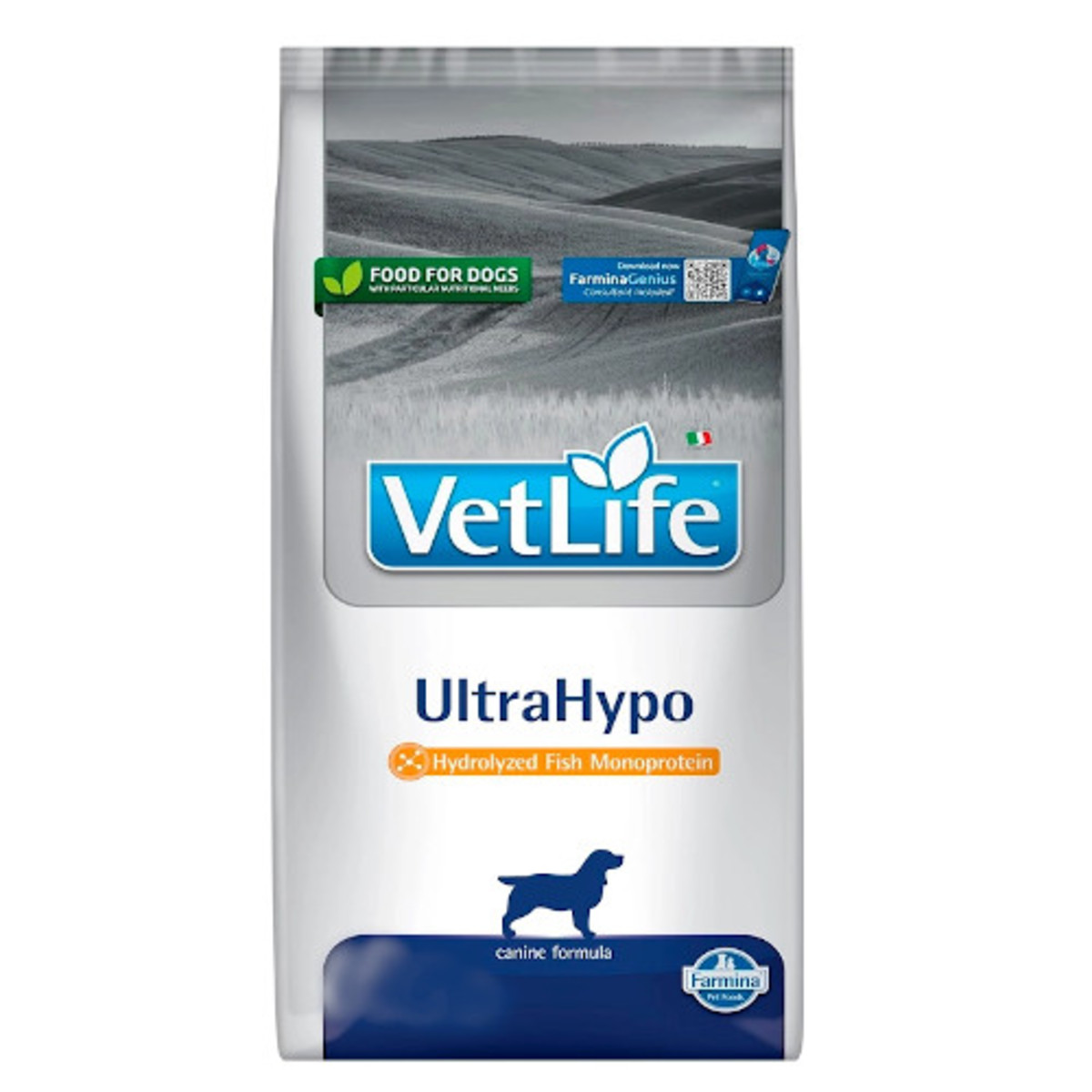Reacciones alérgicas. Atopias. Farmina Vet Life UltraHypo es un alimento completo dietético para la reducción de la intolerancia a sustancias nutritivas en perros con alergias a los alimentos o atopia. Particularmente indicado en el tratamiento de la dermatitis atópica refractaria y diarrea recurrente.