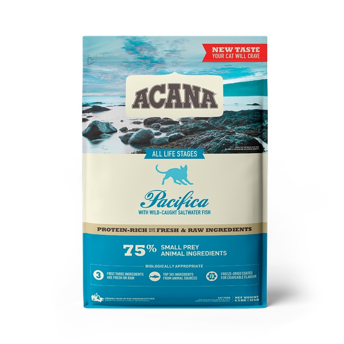 Pienso para gatos de todas las razas y edades, con un aporte del 70% de pescado fresco como única fuente de proteínas animales, 30% de verduras y frutas saludables, EPA y DHA para la piel y el pelaje, sin cereales.