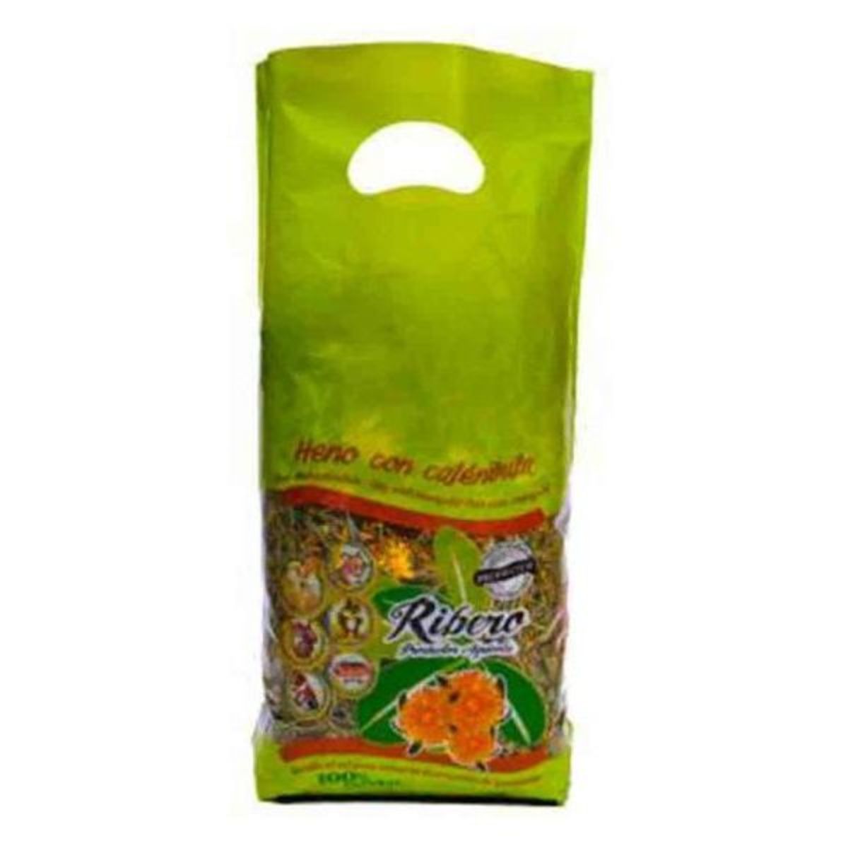 Heno gourmet con caléndula para conejos y roedores. El Heno con caléndula de Ribero es un alimento esencial en la dieta de conejos, cobayas, ratones, chinchillas, hámsters y ardillas, por su alto contenido en fibra. Formato: 500gr