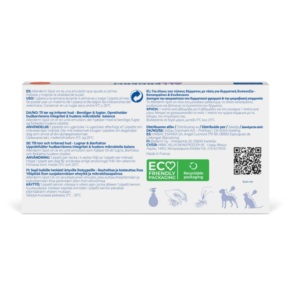 Allerderm Spot On 2Ml- 6Pip es un producto diseñado para el cuidado de la piel de las mascotas.